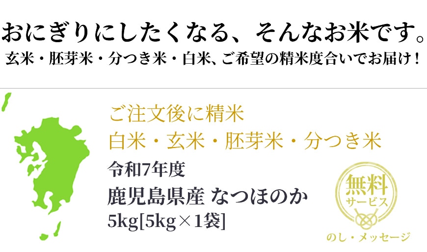 ・九州、福岡から搗き立て(精米したて)の新鮮でおいしい鹿児島県産なつほのかをお届けいたします。