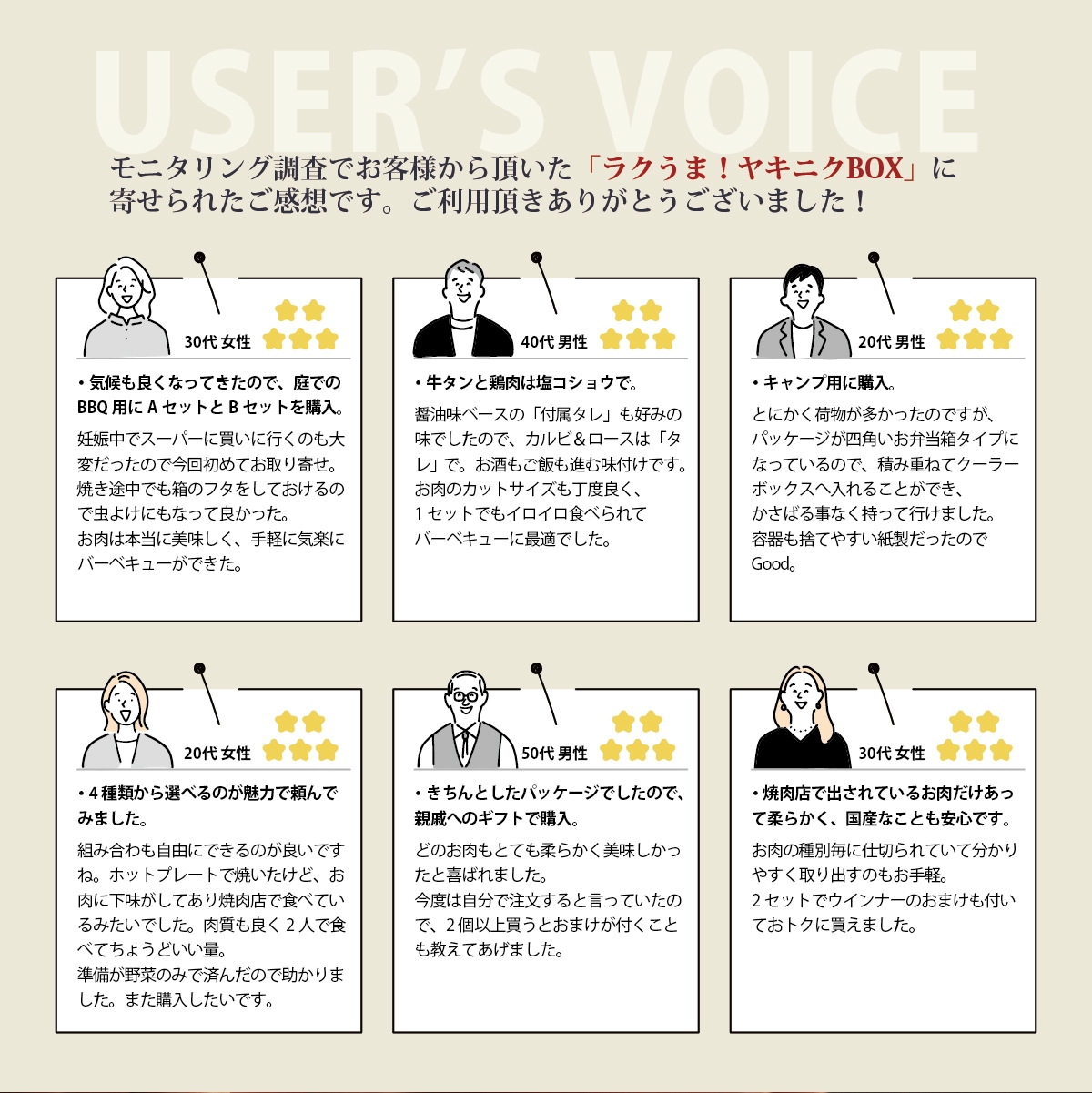 黒毛和牛カルビ 80g/黒毛和牛ロース 80g/国産豚トロ 80g/国産鶏もも 80g/